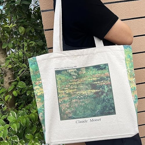 This tote bag is roomy enough for a laptop, phone, wallet, and anything else you want to carry. And unlike most totes, it has a zippered top to keep everything secure. Choose from a wide variety of designs in the listing.
