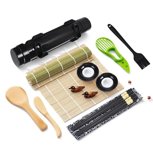Pull off the most delicious sushi at home with this 14-piece set. It comes with a knife, bamboo rolling mat, rice bazooka, chopsticks, sushi mold, and more. Follow the included instructions to make the sushi — it’s beginner-friendly.