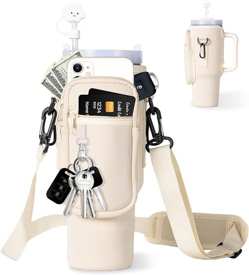 Don’t lug your favorite water bottle around by hand. Instead, use this carrier bag to hold it, plus essentials like your phone, keys, and credit cards — it’s basically all you need. It snugly holds 30-ounce tumblers, and the shoulder strap adjusts in length (from 27.5 to 50 inches) to ensure a comfy fit. Choose from a few colors in the listing.