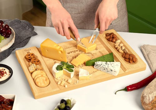 Whip up a Pinterest-worthy charcuterie board with this bamboo platter that has a 4.7-star overall rating after more than 10,000 reviews. It has a large serving area for meats and cheeses, plus slotted compartments for loose items like nuts, olives, or crackers. Slip-resistant feet ensure it doesn’t slide around on your table or counters.