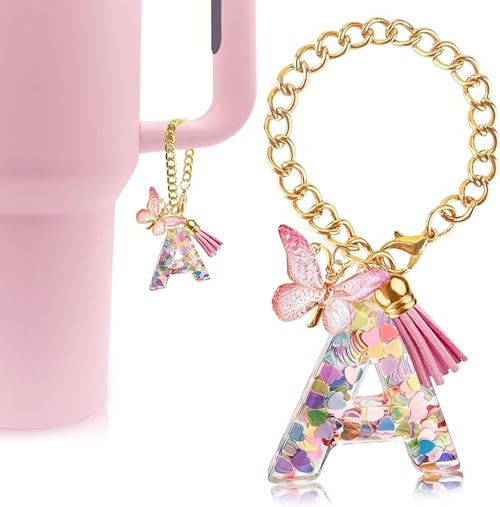 Attach this letter charm to the handle of a tumbler (including the ever-popular Stanleys in 20- to 40-ounce sizes) for a custom touch. The cute charm has a butterfly clasp, allowing you to adjust the length as needed. All letters of the alphabet are available — choose the one of the recipient’s first or last name.
