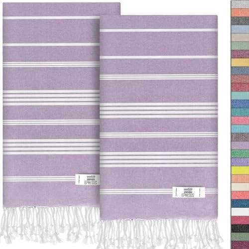 These hand towels are crafted from a blend of cotton and polyester, making them soft, absorbent, and durable. They have pretty details like stripes and tassels to finish them off. Use them in the kitchen or bathroom as needed. Consider 30 color options in the listing based on what works in your space.
