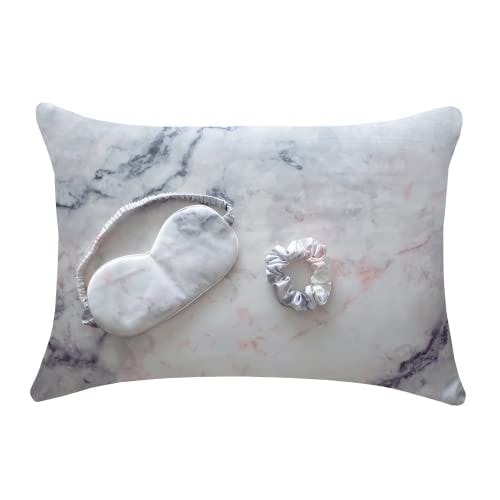 Luxury Satin Pillowcase, Eye Mask, Scrunchie Gift Set by Fenrici, Pure Vegan Silk Beauty Sleep Aid for Hair and Skin Care, Ideal for Women, Teens, Pastel, Marble, Grey, Ivory, Standard