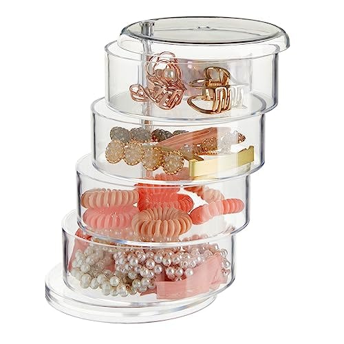 Juvale 4 Tier Stackable Hair Accessories Organizer for Hair Ties, Bows, Clips, Scrunchies, Clear 360° Holder (4.5 x 6.9 In)