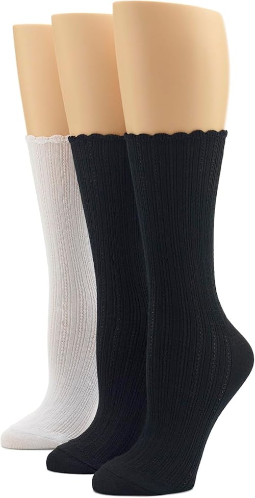 Crew-length socks are having a moment, and these particular ones are elevated by a scalloped edge, a seam at the toe for durability and a pima cotton blend fabric that’s the softest. The set includes three pairs (two are black and one white), though other options are up for grabs in the listing.