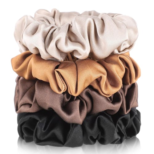 Made from 100% mulberry silk, these hair scrunchies are gentle on hair — they won’t pull, tangle, or otherwise damage it — and yet, they’ll secure your updo all day long. The set comes with four scrunchies in luxe neutral shades, though a few other options are available in the listing to consider.