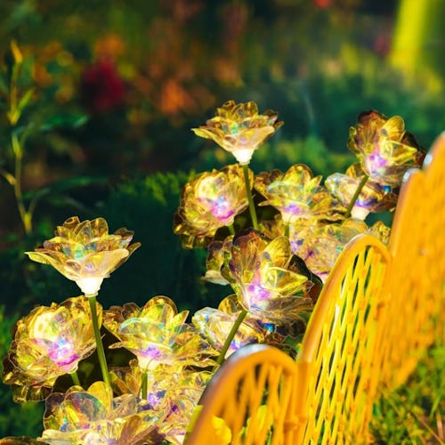 “The rose-shaped design looks beautiful, and the color-changing feature makes them stand out at night,” wrote one fan about these solar lights that you can position in your garden, along your walkway, or other outdoor areas. They’ll turn on and off automatically, and the waterproof design means you can keep them out year-round. The set includes two 5.5-inch-tall sprigs.