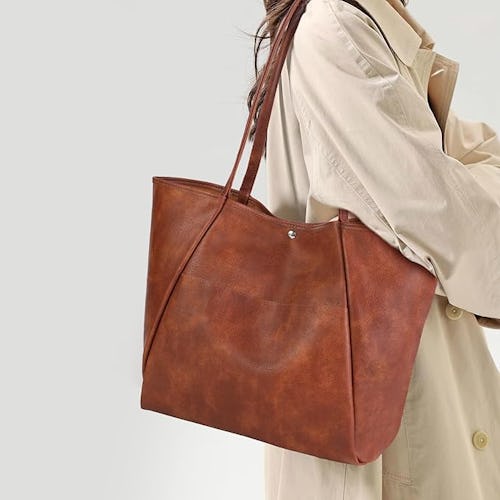 Leather bags are pricey, but this faux leather tote looks like the real thing (and the metal hardware elevates the design of it as well) — however, it costs under $25. It’s extra-large for work, travel, or errand runs, and there are various pockets for organization. It comes in six rich-looking shades in the listing.