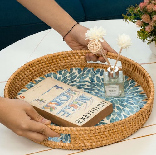 This round tray is the peak of craftsmanship. It’s handmade by Vietnamese artisans, featuring a woven rattan exterior and a luxurious mother of pearl inlay. Use it to serve food in style, as a catch-all for odds and ends, as a decor element, or whatever else your heart desires. It comes in a few colors in the listing.