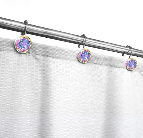 Jazz up a boring shower curtain with these 12 crystal hooks. The hooks themselves are made from metal that’ll glide smoothly across your shower rod. The oil-rubbed finish makes them resistant to rust to last shower after shower. They’re available in the rainbow version shown, as well as black, clear, pink, green, and more in the listing.