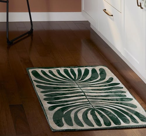 Whether you place it in your kitchen, bathroom, bedroom, or somewhere else, this nature-inspired rug will freshen up any space. It has a low profile to not impede doors, and the woven polyester and cotton material makes it washing machine-friendly, so it’ll always look pristine. It comes in green, gold, navy, and taupe (as well as two sizes) in the listing.
