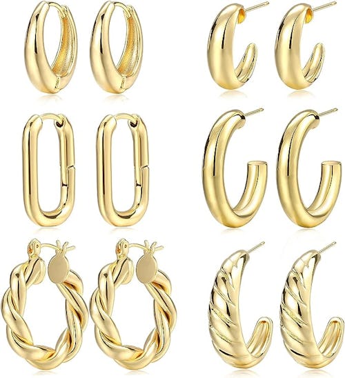 Because earrings are an effortless way to accessorize, this affordable six-pair set of trendy hoops is a must-buy. The set includes a range of textures from twists to chunky tubes, all crafted from lead- and nickel-free materials and plated in 14-karat gold for comfortable wear and a long-lasting shine.