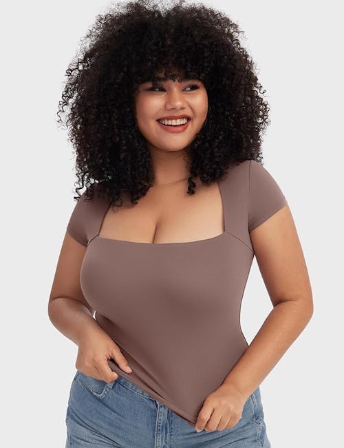 It doesn’t get smoother than this top. Constructed from a buttery-soft material and featuring a modern cut complete with a sleek square neckline, this chic top is a “must-add” to your wardrobe. Dress it up with a silky skirt or down with your favorite denim — either way you’re sure to look and feel like a million bucks.