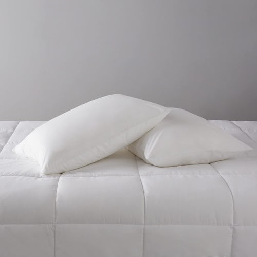 If you enjoy the feel of down pillows but aren’t “down” with real feathers (or their price tag), you’re going to appreciate these hypoallergenic pillows by Amazon Basics. They’re generously stuffed with a polyfill for maximum comfort. Plus, they’re sealed within a 100% cotton case for added breathability. As one shopper raved, “This pillow is soft but holds its shape, doesn’t get too hot and was reasonably priced.”