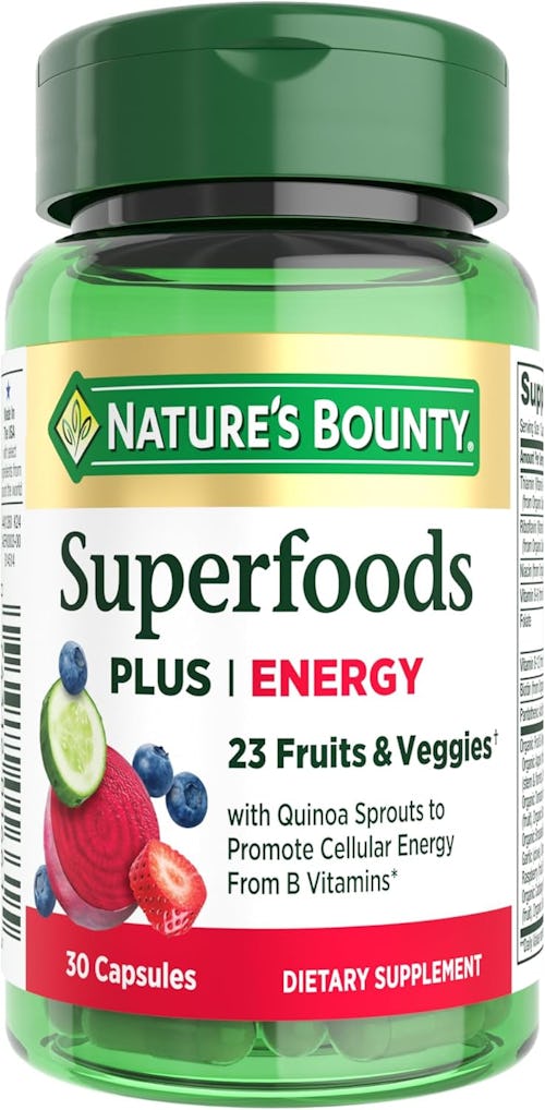 Rich in vitamin B-12, and formulated with a B-complex from quinoa sprouts, this superfoods supplement is designed to promote cellular energy. Its non-GMO and vegetarian formula blends 23 different fruits and vegetables alongside the quinoa sprouts to aid your body’s conversion of food into cellular energy. These easy-to-swallow capsules come in a jar of 30, and you can take them daily.
