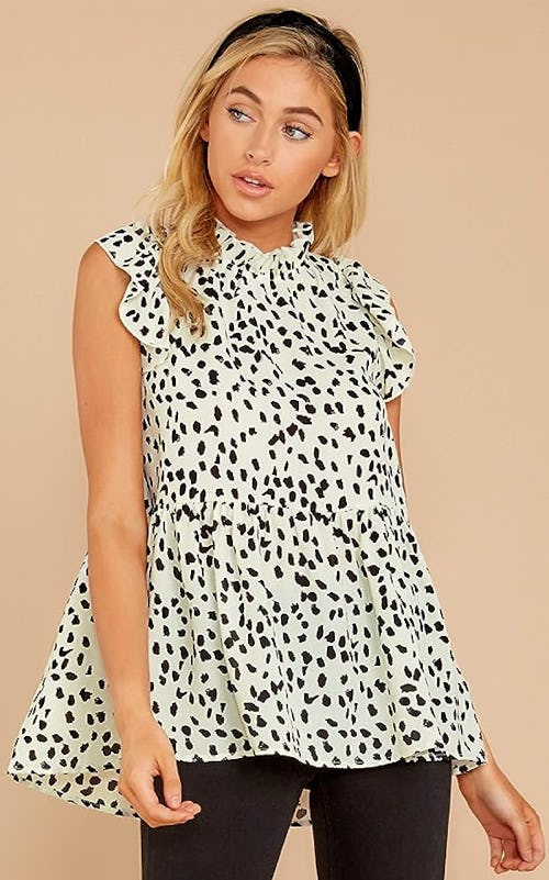 You’ll want to wear this off-the-shoulder peplum blouse to any and all occasions. It has bell sleeves and a chic babydoll silhouette. You can re-tie its bow belt to perfectly fit your waist, or style it as a knot instead. There’s a wire in its notched neckline to ensure it never sags.