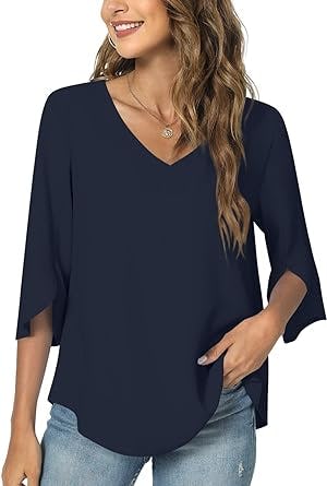 You can style this V-neck tunic top for lots of different occasions. Made of breathable chiffon, it’s seasonally appropriate year-round. With split sleeves, it’s a touch more elevated than your average blouse. It also has a classic round hemline and opaque fabric to keep you covered all day long.