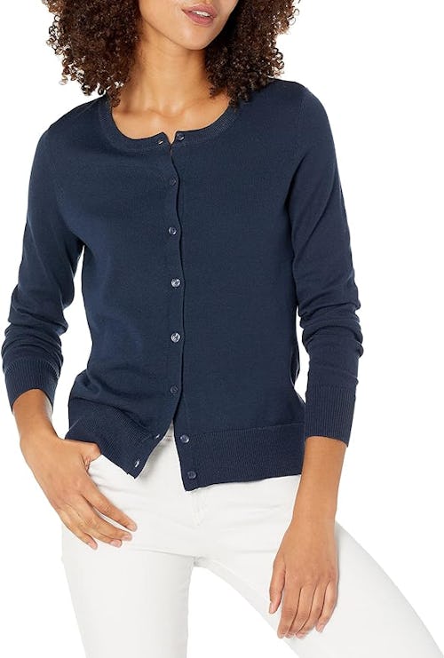 A timeless essential, this lightweight crewneck cardigan delivers preppy vibes without a designer price tag. Crafted from a soft cotton-modal blend, it layers effortlessly over everything from work blouses to casual tees. Whether worn open or buttoned up as a top, it’s a stylish and practical pick for year-round wear.