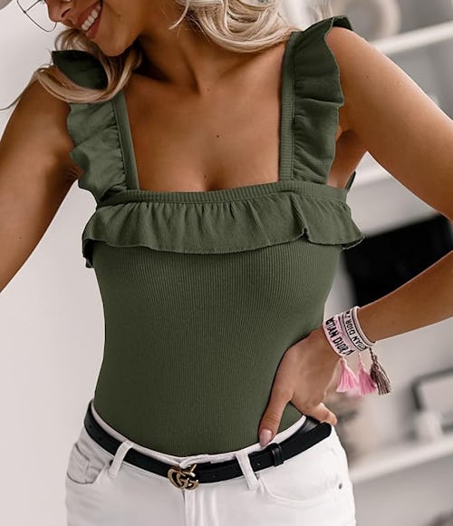A simple tank is fine, but this ruffled one is an instant upgrade that makes even jeans and sneakers look put together. The square neckline and fluttery straps add a touch of romance, while the thick, stretchy knit fabric keeps it comfy and non-see-through. However you style it, this top makes every outfit look polished — and at this price? You might as well grab more than one.