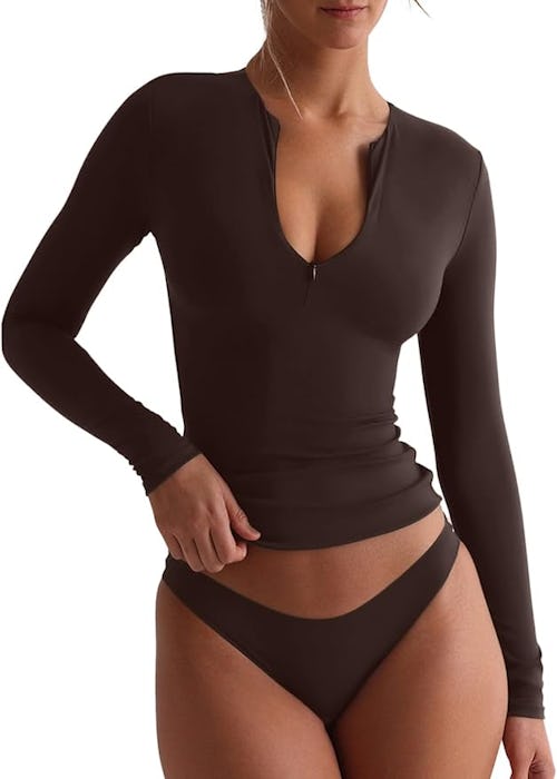 No matter how you style this curve-hugging top, you’re sure to look and feel so good. The designer look-alike is made from a buttery-soft fabric and features a double lining for added warmth and coverage. It’s perfect for hitting the gym — or zip the neckline down to style it as a sexy top for going out.