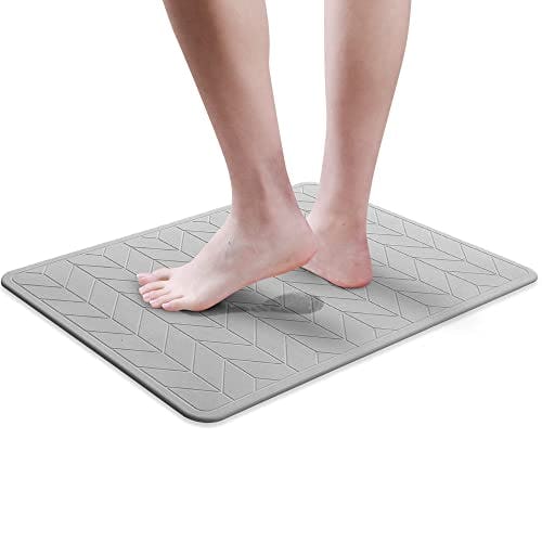 Malu Diatomaceous Earth Bath Mat – Fast-Drying Water-Absorbent Stone Bath Mat – Wide 15.4 X 23.6 inches Non-Slip Stone Mats for Bathroom Shower Floor – Diatomite Bath Mat with Grey Herringbone Design