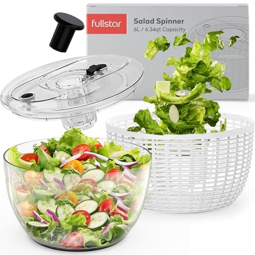 Fullstar Large Salad Spinner- Lettuce Spinner, Fruit Washer Spinner, Fruit Dryer Spinner, Fruit Spinner Dryer, Fruit Cleaner Spinner, Salad Spinners Salad Dryer, Vegetable Spinner – 6.3 Quart (White)