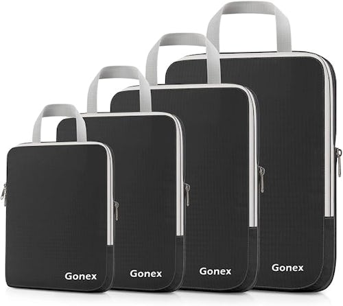 These packing cubes not only help organize the inside of your suitcase but also feature a double zipper system that compresses everything inside to help you pack more efficiently than ever. They’re made of abrasion-resistant nylon with a double stitched seam for added durability. They’re water-repellent, and come in four different sizes that are great for all your travel essentials.