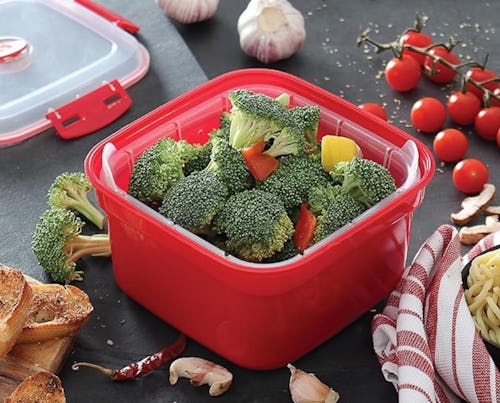 This pizza storage container can hold up to five slices and includes perfectly shaped separators to make sure each slice stays fresh. It’s expandable so it’s only as big as the amount of pizza inside, which can help save a ton of space in your refrigerator. It has an airtight seal, and the whole thing is microwave-safe to heat up leftovers.