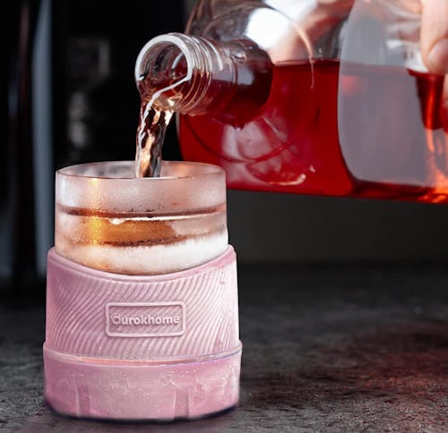 These cooling whiskey glasses features a layer of refillable water that, when placed in the freezer, freezes in just four hours to keep your drinks chilled without using any gel or chemicals. It has a 360-degree silicone sleeve to protect your fingers from the cold, and it’s made of a BPA-free, recyclable plastic.