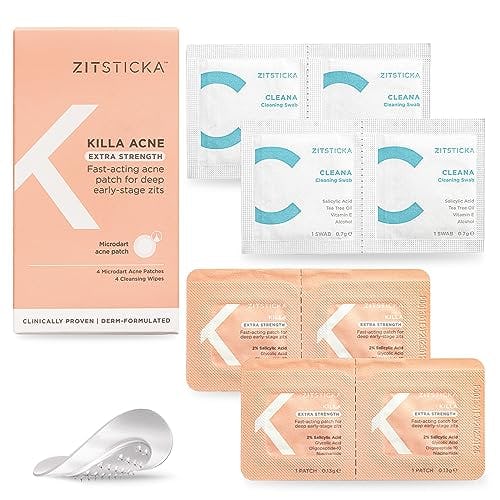 ZitSticka Extra Strength Killa Acne Patches for Face – World’s Most Potent Pimple Patch with Fast-Acting Microdarts – Starts Working within 2 Hours for Deep, Early-Stage Zits & Blemish – 4 Count