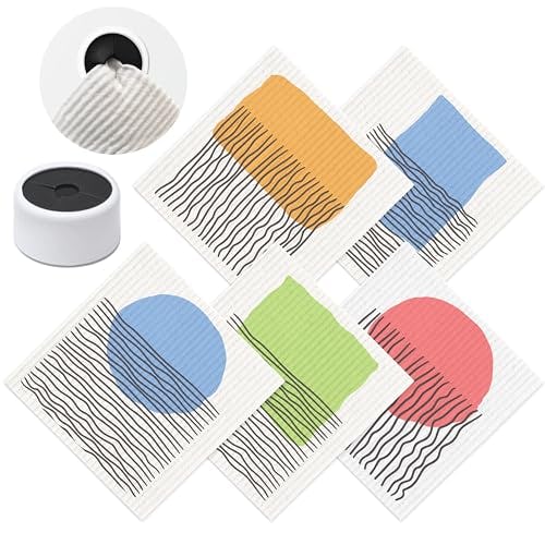 SUPERSCANDI Swedish Dishcloths With 100% Recycled Bioplastic Hanger, Reusable Paper Towel Washable 100 Times, Biodegradable, Super Absorbent Cleaning Cloth Dish Towel For Kitchen 5-Pack Abstract Print