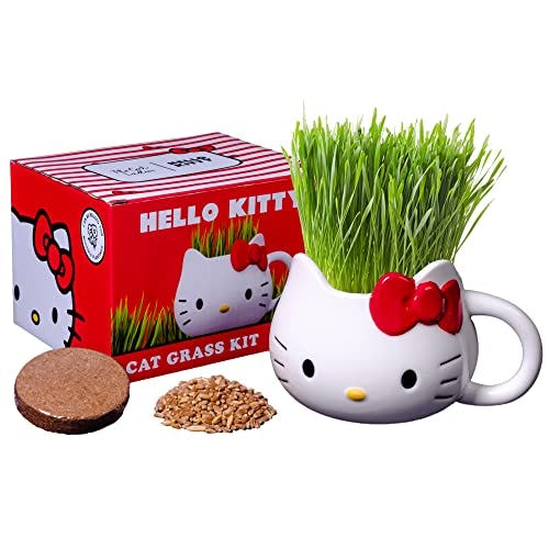 Hello Kitty Organic Cat Grass Growing kit with Organic Seed Mix, Soil and Hello Kitty Mug Planter. Natural Hairball Control and Digestive Remedy