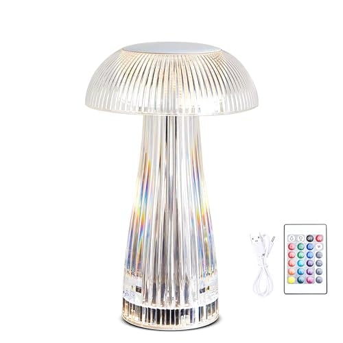 flybold Acrylic Mushroom Lamps – Clear Transparent Modern Desk Lamps with Remote Control – Portable Dome Shade Accent Decor for Living Room – 3ft Cord, 15W Bulb, E12 Socket – 10.62Hx6.69Lx6.69W