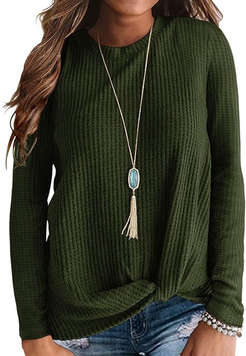 This Popular Twist Knot Shirt In A Cozy Waffle Knit