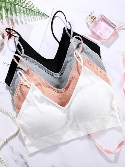 If you’ve been searching for the perfect bra that you can wear for sleeping, lounging, and running errands, you’ve found it with this four-pack of padded bralettes. The pull-on, ribbed bras have no underwire, and you don’t have to commit to padding as it’s easily removable. The straps are thin and the low neck is perfect for all types of clothing.