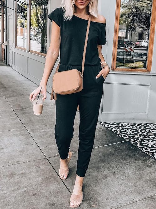 When you’re looking for an all-in-one outfit that covers all the bases, this elastic-waist jumpsuit is just the ticket. It has a wide boatneck, which you can pull to one side for an off-the shoulder look, and a trendy, tapered leg. Because it’s so effortless, you can easily wear it casually with a sneaker or dressed up with a heeled sandal.
