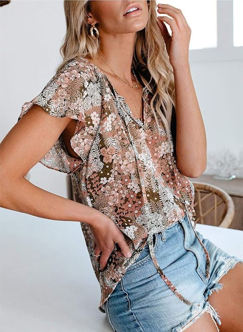 Put the petal to the metal in this pretty blouse. Available in a veritable garden of prints, from ditsy designs to artsy watercolor florals, there’s something for every aesthetic. The V-shaped neckline can be tied for a different look and the ruffled cap sleeves aren’t too bulky to slip under a blazer. No wonder more than 10,000 shoppers have added it to their carts.