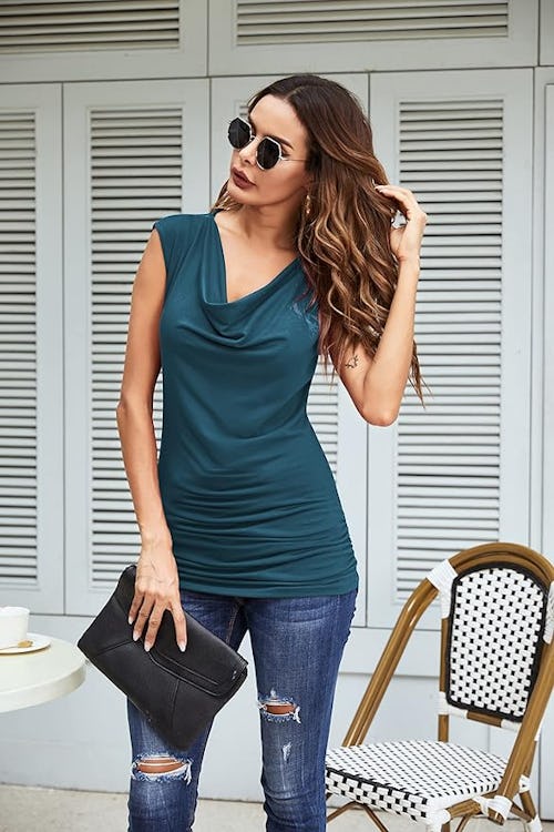 This tank top is easy like a Sunday morning with its lounge-worthy texture. It’s made of a similar waffle-weave fabric to what you’d find on a hotel bathrobe with a split neckline and streamlined fit for style. There’s just enough extra room for comfort, but you can still tuck it into your jeans. More than 6,000 shoppers have given it a five-star rating.