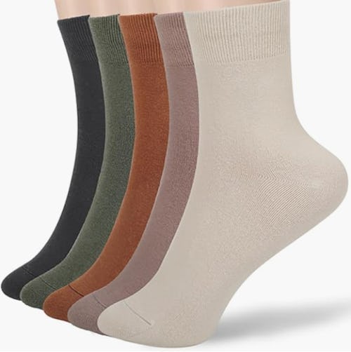 Your feet will be treated to breathable comfort with these cotton-blend crew socks. They’re perfect to wear under any type of boots or just for lounging around the house. These socks come in packs of five and there are several colors to choose from, including basic solids and even a sporty perforated design. With more than 8,000 five-star ratings to date, these are high-quality socks to add to your collection.