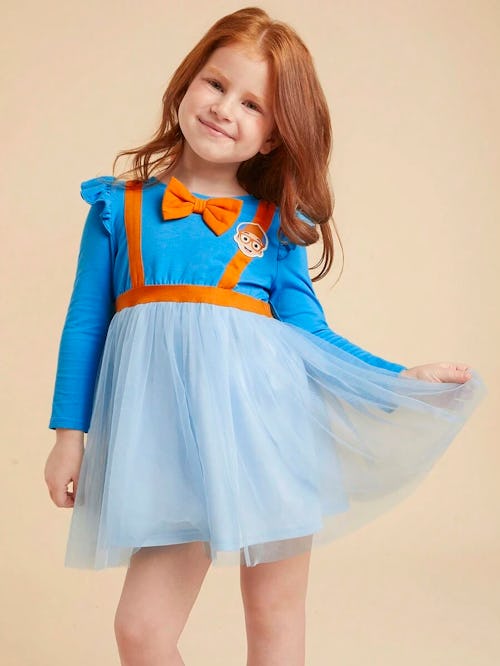 The collection combines Blippi’s signature blue and orange style with everyday practicality. Boys’ clothing is filled with active-friendly pieces like hoodies and sweaters in eye-catching colors. Printed pants (featuring dinosaurs!) make crawling under imaginary bridges or climbing onto a pretend excavator feel even cooler. For the girls, it’s all about playful flair: colorful graphic dresses, pants adorned with the sweetest orange bows, and long-sleeve tops that pair perfectly with the joyful spirit of exploration. There are also tons of Blippi accessories, like shoes, socks, and backpacks that are perfect for a family weekend trip or just a backyard treasure hunt.