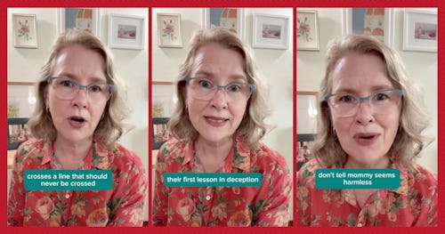 “Picture this: you give your grandchild an extra cookie and say ‘Don’t tell mommy!’ Seems harmless, doesn’t it? It’s not,” she continues. “Here’s why this is never OK — ‘Don’t tell Mommy’ is literally asking a child to lie to their parents. Children need to know that they can tell their parents anything, and you’ve just taught them the opposite.