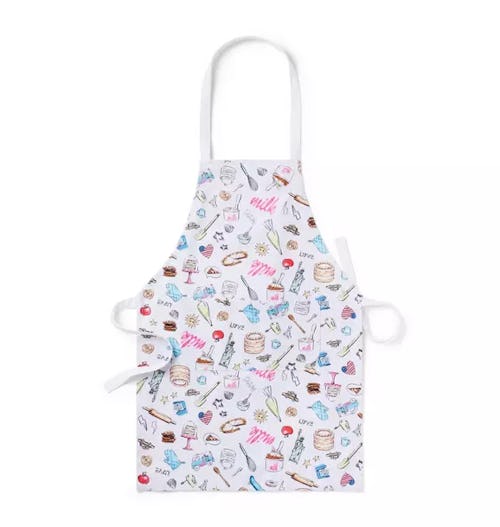 When rainy days hit this summer, bake up some fun with a little indoor action in the kitchen. This cheery apron, featuring NYC-inspired details (think: pretzels, apples, and taxis) combined with baking accoutrements like whisks and cookie cutters will get your little ones pumped to whip up something delicious.