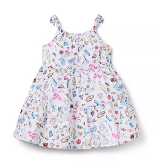For all your warm weather occasions, this 100% cotton number is a no brainer. With an adorable tiered silhouette, bow details, and a limited-edition dessert print, this sleeveless dress will keep them comfy and cute no matter how hot it gets outside.