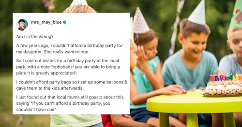 “Am I in the wrong,” she asked on Threads. “A few years ago, I couldn’t afford a birthday party for my daughter. She really wanted one. So I sent out invites for a birthday party at the local park, with a note ‘optional: if you are able to bring a plate it is greatly appreciated.’ I couldn’t afford party bags so I set up some balloons & gave them to the kids afterwards. I just found out that local mums still gossip about this, saying ‘if you can’t afford a birthday party, you shouldn’t have one’.”