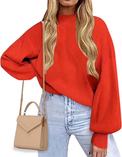 Women’s 2024 Fall Fashion Mock Neck Long Lantern Sleeve Oversized Sweaters
