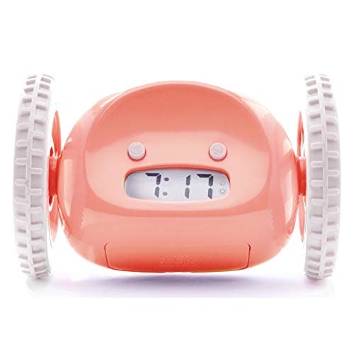 CLOCKY Alarm Clock on Wheels (Original) | Extra Loud for Heavy Sleeper (Adult or Kid Bed-Room Robot Clockie) Funny, Rolling, Run-Away, Moving, Jumping (Pink)