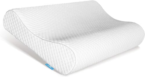 The contoured shape of this memory foam pillow is certainly unique. However, once you give it a try, you’ll never go back — it perfectly cradles your head, neck, and shoulders for all-night comfort. The pillow has a ventilated design to keep you cool, too.