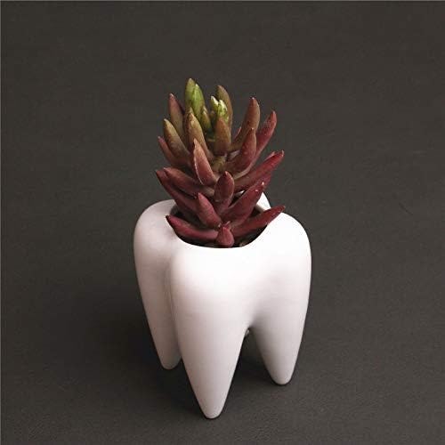 This plant pot is shaped like a tooth for fun but it’s functional, too. It’s made from sturdy ceramic, and its small size is ideal for petite plants like succulents, herbs, etc. Drainage holes on the bottom prevent overwatering.