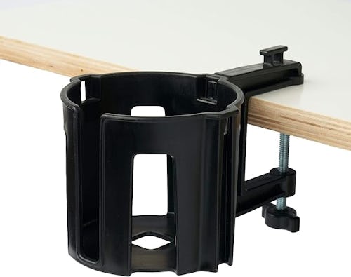 Prone to spilling your cup at your desk? Same. Buy this cup holster to prevent this from happening again. It’ll clamp onto surfaces up to 2 inches thick, and it’ll securely hold most cups, cans, tumblers, and other drinking vessels. Pick from five colors in the listing.