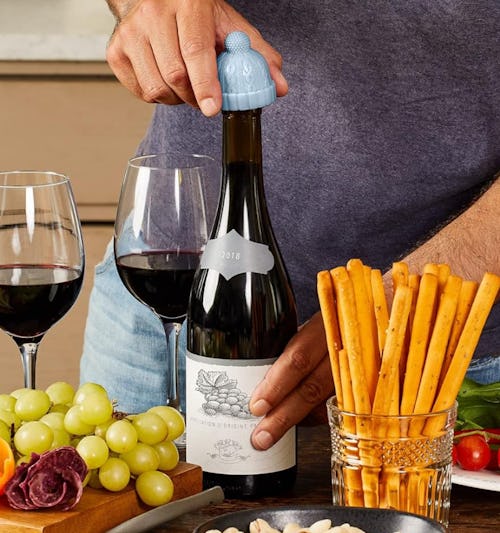 Not only are these bottle beanies cute as heck, but they’re also functional — pop them inside a wine bottle to create an airtight seal for freshness. Made from silicone, the pair of BPA-free beanies are dishwasher safe. This set includes a blue and gray stopper, but other options are up for grabs in the listing.